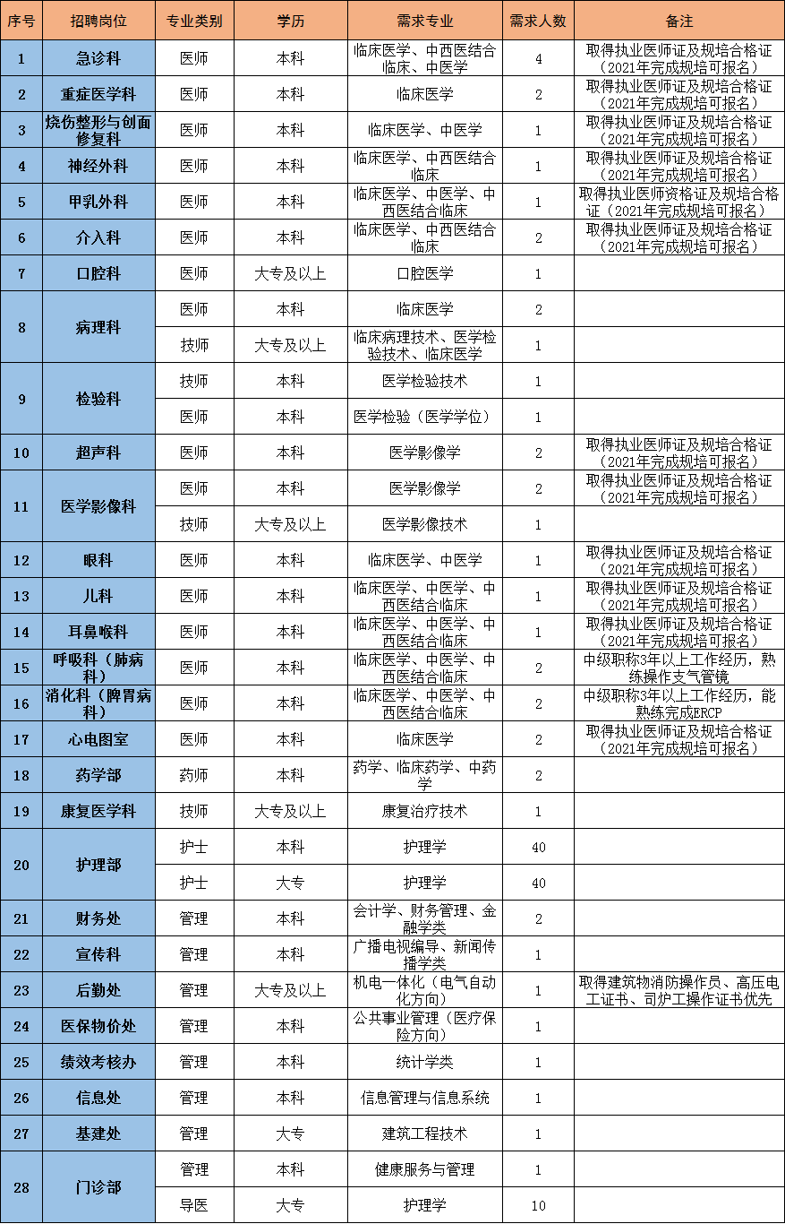 泰州市中醫(yī)院是泰州市衛(wèi)生健康委員會(huì)下屬差額撥款事業(yè)單位,計(jì)劃招聘133名合同制工作人員,具體崗位、專業(yè)、學(xué)歷等要求詳見《泰州市中醫(yī)院2021年合同制工作人員招聘崗位表》(見下表)。