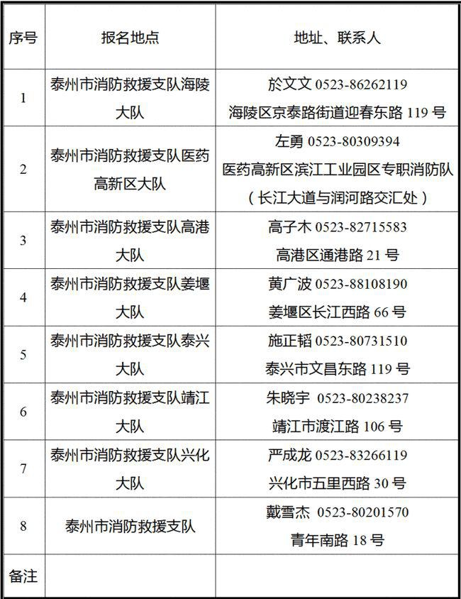 此次征召工作由泰州市消防救援支隊組織,報名人員如提供虛假資料或故意隱瞞事實,偽造、編造證書、材料等騙取應聘資格的,一經(jīng)查實取消聘用資格。