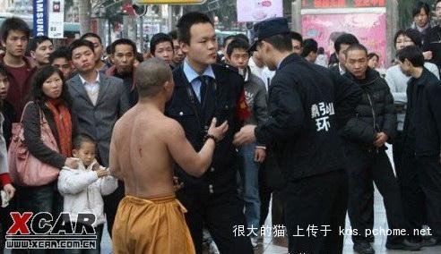 一個(gè)160左右的少林寺弟子,在深圳華強(qiáng)北賣(mài)藝,用酒瓶敲頭,林沖用的長(zhǎng)槍插自己,開(kāi)始有4個(gè)城管叫他走,他沒(méi)有理會(huì),4個(gè)城管也在旁邊看,邊打電話,隨后和尚18般武藝都使出來(lái)了,后來(lái)來(lái)了一車(chē)城管,想直接去砸和尚的東西,開(kāi)始4個(gè)城管就對(duì)他們說(shuō),他功夫厲害,30多個(gè)城管拿棒子準(zhǔn)備打架的狀態(tài),城管說(shuō)你走不走,和尚說(shuō)這里是中國(guó)人的地方我就不走,有本事抓我槍斃,要打架,我不怕你人多,隨后大叫一聲,用手直接把磚頭敲碎了,城管老大看見(jiàn)以后就說(shuō),你要講道理,出家人不要喊打打殺殺,現(xiàn)場(chǎng)的人全部笑了 !——網(wǎng)友言