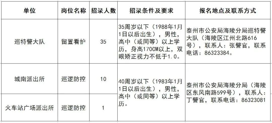 因工作需要,泰州市公安局海陵分局決定面向社會公開招錄警務(wù)輔助人員。現(xiàn)就有關(guān)事項(xiàng)公告如下: