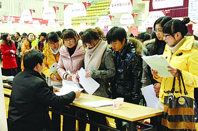日前,江蘇技術(shù)師范學(xué)院在該校體育館舉行師資專場招聘會,100余家學(xué)校來校招聘畢業(yè)生,為畢業(yè)生提供了近600多個就業(yè)崗位。據(jù)統(tǒng)計,江蘇技術(shù)師范學(xué)院2011屆畢業(yè)生有3780人,其中師范生531人,用人單位為動手能力強的學(xué)生敞開大門。