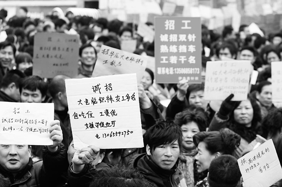 和王婷一樣,來自河南的趙何芳也換了不少工作。“最主要還是沒有技能,做不長,我們學(xué)歷不高,很多機器不會用,一些企業(yè)不敢招我們。”趙何芳說,“從前年開始,就不怕找不到工作了,不少單位缺人,我們選擇的余地很大。一些單位工資待遇不好,做得也辛苦,我們就不做了。”